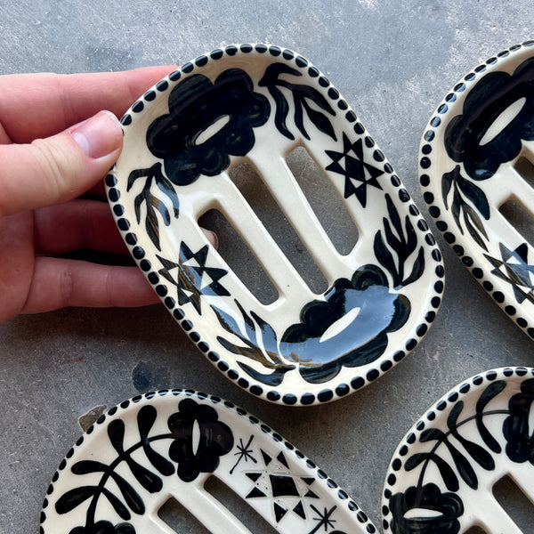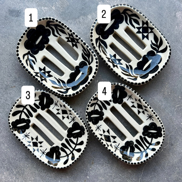 Hand painted one of a kind soap dishes. Please select which one(s) you’d like, see 3rd photo for options.